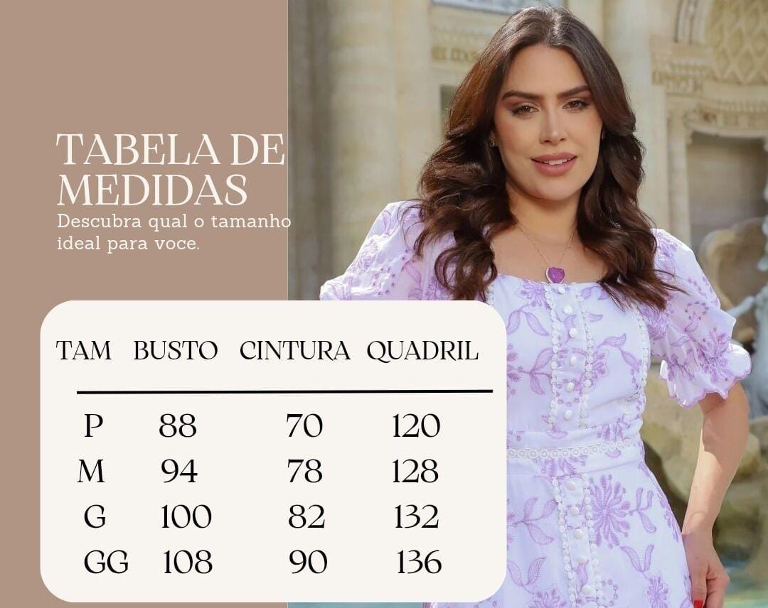 Principal: 100% Algodão / Forro: 100% Poliéster Vestido Isabel, no comprimento max midi bordado, apresenta zíper nas costas, botões frontais decorativos, lastex nas mangas com detalhes de guipir na saia e blusa. Vestido todo forrado. Tamanho: P M G GG