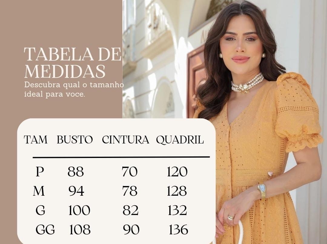 VESTIDO LARI Principal: 100% Algodão / Forro: 100% Poliéster Vestido Lari no comprimento midi, apresenta botões frontais funcionais, lastex na manga e detalhes de guipir na blusa e saia. Vestido todo forrado. Tamanhos: P M G GG